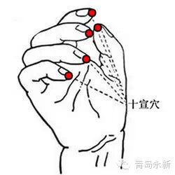 【取穴方法】仰掌,十指微屈微,十宣穴在手十指尖端,左右共10个穴位