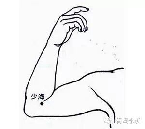 把手握成拳,在第5掌指关节后的远侧掌横纹头赤白肉际处即是(即把手握拳,掌指关节后横纹的尽头就是该穴)