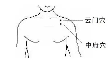 位于胸部,锁骨下窝凹陷中,肩胛骨喙突内缘,前正中线旁开6寸,有胸大肌